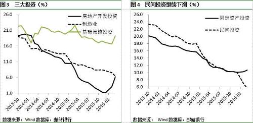 回落8.8个百分点;第二产业投资增长7.3%,增速回落0.6个百分点;第三产业投资增长12.6%,增速加快1.5个百分点。二是民间投资持续下降,政府投资挤出明显。民间固定资产投资53197亿元,同比名义增长5.7%,增速比1-2月份回落1.2个百分点,其中第二产业增长6.7%,回落1.6个百分点。三是东北地区投资下滑明显,同比下降19.3%,降幅扩大0.7个百分点。