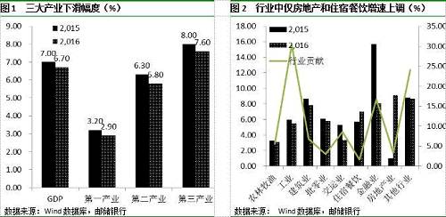 行业中,贡献较大的行业分别为工业(30.4%)、其他行业(24.1%)、金融业(16.7%)和交运行业(8.6%),但仅房地产(贡献3.3%)和住宿餐饮(贡献1.6%)增速上调,且金融业增速降幅最大。一季度经济的火车头无疑是房地产业,增长9.1%,比上年同期提高8.1个百分点,但房地产业占GDP比值仅为3.3%。住宿餐饮增长7%,比上年同期提高1.3个百分点,但对GDP贡献率也仅为1.6%。