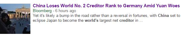 北京时间27日凌晨,彭博社报道称,截至2015年底,德国已超越中国成为全球第二大债权国,这是中国至少10年来首次失去第二大债权国地位,原因是中国当局为支撑人民币汇率而出售外汇储备,加上去年的市场动荡导致大量资金外流。