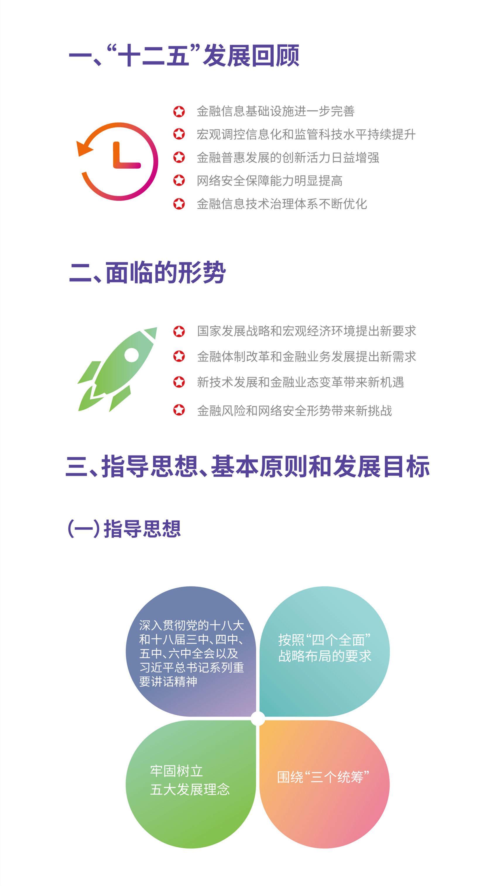 《规划》强调,“十三五”时期金融业要全面支持深化改革,积极对标国际先进,推动创新普惠发展,坚持安全与发展并重,并围绕统筹监管系统重要性金融机构、统筹监管金融控股公司和重要金融基础设施、统筹负责金融业综合统计,推进信息技术发展各项工作。