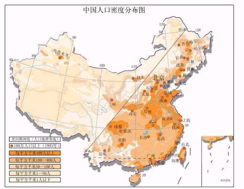 上图是著名的“胡焕庸线”,这是中国著名地理学家胡焕庸在上世纪三十年代提出的。这条线把中国的陆地面积分为两部分,其中西部的面积超过56%,但只有6%左右的人口;东部只有不到44%的面积,但却集中了中国94%的人口(2000年数据)。最近几年,山海关以北“沦陷”为人口严重流失地区,所以人口和税赋的核心区进一步退缩到了历史上的“汉地十八省”区域,或者是秦始皇时代版图区域。