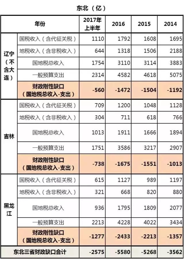 华北、西南等片区的略去,天津、重庆的地方财政都是“亏损”的。