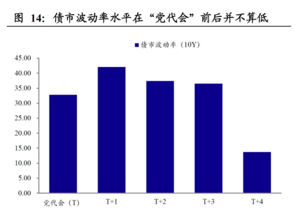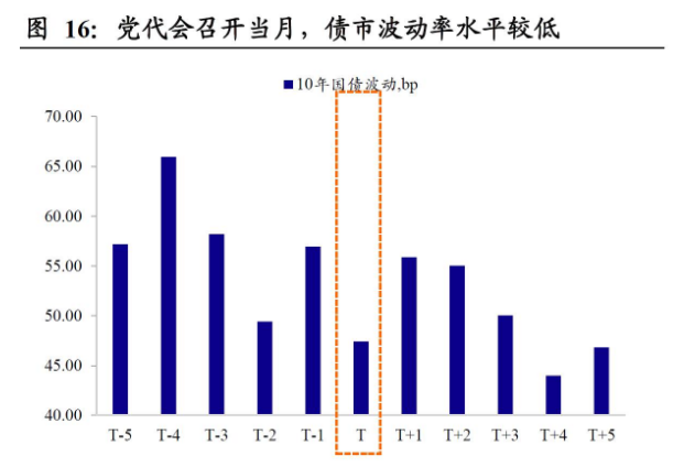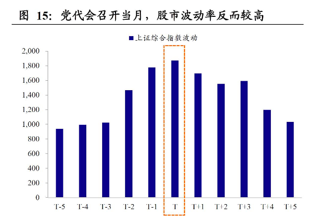 第三,市场“维稳效应”似乎并不明显。不少投资者认为,党代会期间政策层维稳意愿上升,会对市场形成支撑,至少不会大幅波动。不过这一结论在数据上似乎得不到支持。可以看到:①年度之间比较,党代会当年股、债两市波动率不会出现明显的下降,股市波动率甚至比其他年份更高。②从月度层面看,比较党代会召开当月与前后5个月的行情,股市波动率不仅不会降低,反而会上升;债市波动率会出现一定程度的下降。