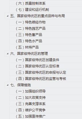 国家级特优区:选择特色明显,对全国影响力大、辐射带动能力强、在国际国内市场具有竞争力、出口优势明显的特色农产品品种,确定重点区域。原则上以县(或市、区、垦区、林区,下同)为单位创建国家级特优区,鼓励产业发展水平相当、产业链条联系紧密的相邻县联合创建。按照先创建、后认定的程序,由国家有关部门负责制定国家级特优区的创建条件、认定标准与管理办法,成熟一批、认定一批。认定时坚持从严把关、宁缺毋滥,认定后实行动态管理,建立退出机制,确保国家级特优区名副其实。